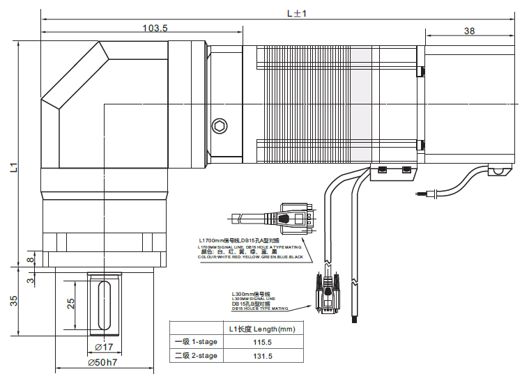Note: Other reduction ratio is acceptable, the brake is DC24V power-off brake, other voltage can be customized as required.